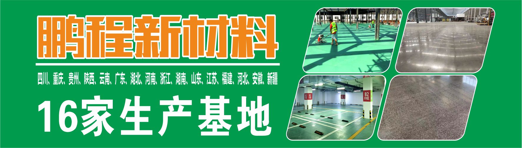 四川鵬程新材料科技有限公司是一家研發、生產、銷售、售后、技術服務為一體的金剛砂生產廠家,總部位于中國西部經濟主力城市天府之國--四川成都。鵬程新材料處于高速發展中,先后在四川成都、重慶江津、貴州安順、陜西咸陽、云南昆明、湖北武漢、廣東惠州、河南鄭州、浙江寧波、湖南湘潭、山東濰坊、江蘇揚州、福建泉州、河北保定、新疆烏魯木齊、安徽安慶等地成立了生產基地,公司擁有國內先進的全自動化金剛砂地坪材料生產線,年生產金剛砂地坪材料超10萬噸。標準化研發、生產金剛砂耐磨地坪材料、地面快速修補材料、混凝土密封固化劑材料、彩色藝術壓花地坪材料、海綿城市彩色透水地坪材料。公...